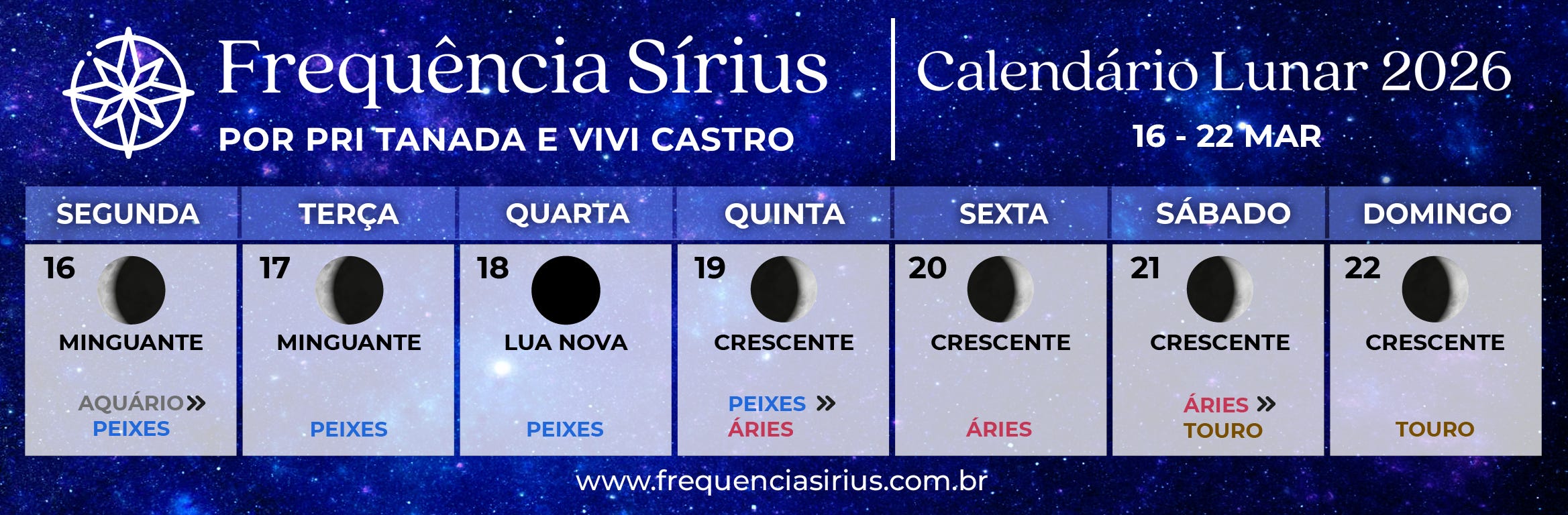 Você perceberá que aqui levamos em consideração todas as fases da Lua e isso pode ser um pouco diferente do que você está acostumado por isso criamos uma página aqui mesmo no Substack para você poder acompanhar os movimentos da Lua com mais detalhes: