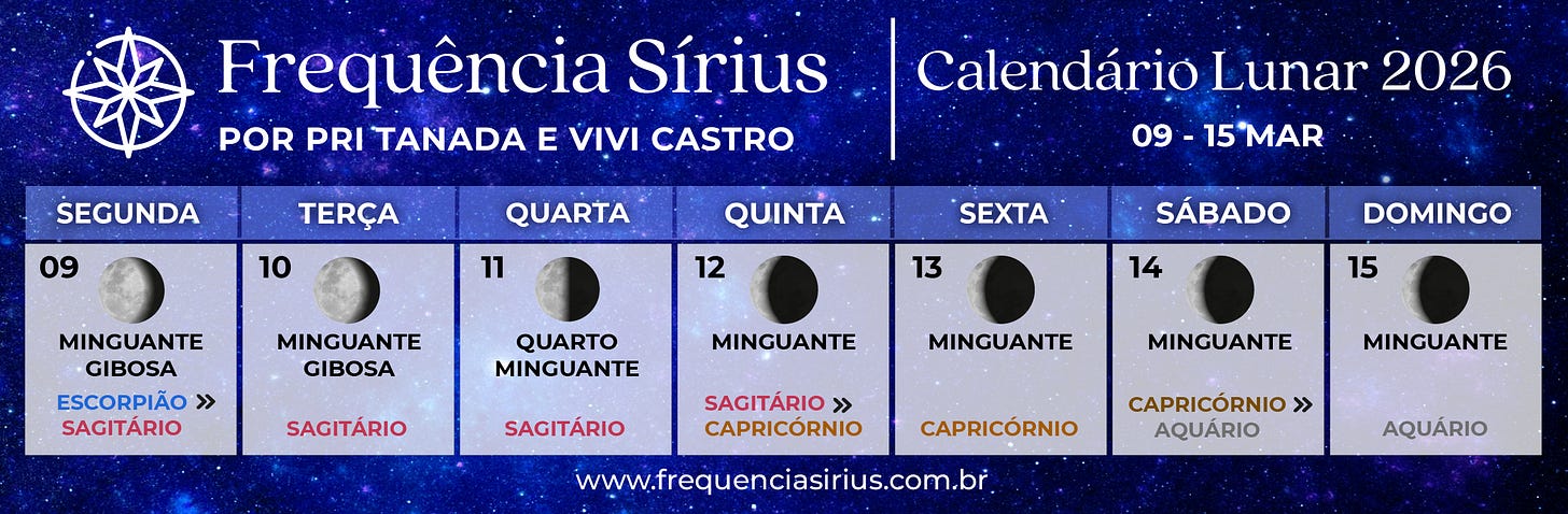 Você perceberá que aqui levamos em consideração todas as fases da Lua e isso pode ser um pouco diferente do que você está acostumado por isso montamos uma página aqui mesmo no Substack para você poder acompanhar melhor os movimentos da Lua com mais detalhes.